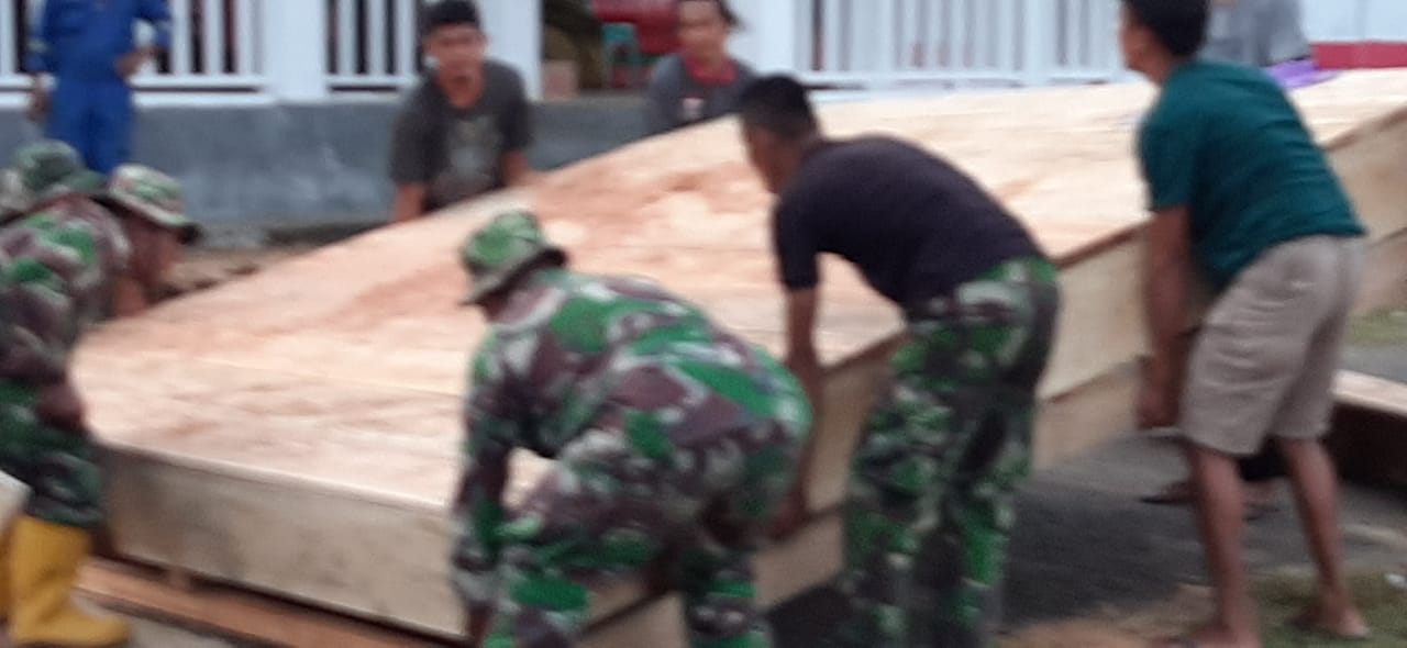Banggai,- Kerja estafet terus dilakukan oleh TNI dan warga masyarakat jelang pembukaan kegiatan program TMMD 107 Reguler Kodim 1308/LB. Seluruh komponen berbenah untuk menyambut pelaksanaan program TMMD, termasuk penempatan podium , atau tempat inspektur upacar, semuanya ditata sesuai dengan arahan dan tempat yang telah ditentukan agar semuanya tertata dengan baik serta dapat berjalan sesuai dengan rencana.