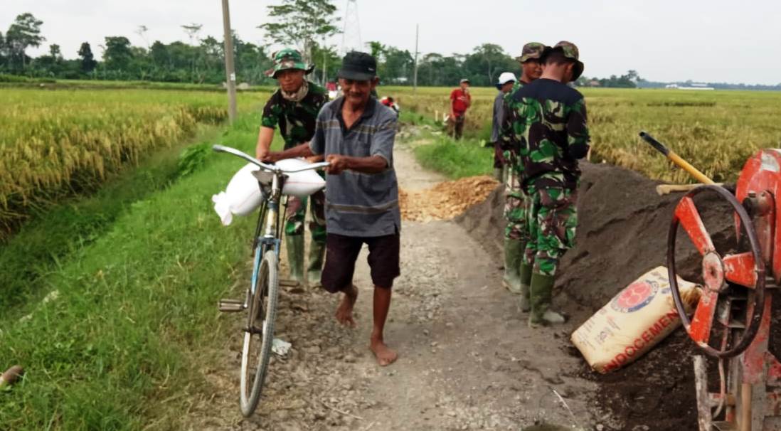 Ternyata celetukan warga itu berawal, ketika seorang anggota Satgas TMMD, Prada Indra Sangaji, yang dari Batalyon Infanteri 407/Padma Kusuma, tengah membantu kakek Sayad (68), yang tengah kesulitan membawa beras dengan sepeda di jalan seputaran pembangunan talud.