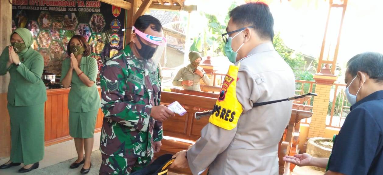 ”Dalam semua kegiatan, saya sendiri yang aktif melakukan patroli. Jika mendapati anggota Satgas atau warga yang ikut kegiatan tidak memakai masker, langsung kita peringatan dan berikan masker,” jelas Babinsa Serda Suparman. (Pendim Purwodadi)