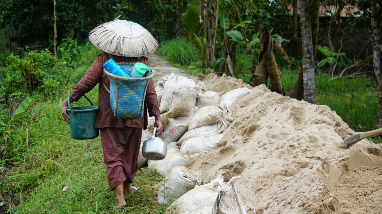 “walaupun berjalan kaki, saya tetap semangat mengantarkan hidangan kopi dan kue untuk suami saya dan satgas yang sedang bekerja. karena nantinya jika jalan ini telah rampung dikerjakan 100 persen, maka manfaatnya sangat besar bagi kami warga Desa, dengan adanya jalan Desa ini kami tidak perlu berjalan terlalu jauh saat bertani, kenderaan roda dua bisa mengantarkan sampai ke lokasi pertanian,”ungkap Isah.