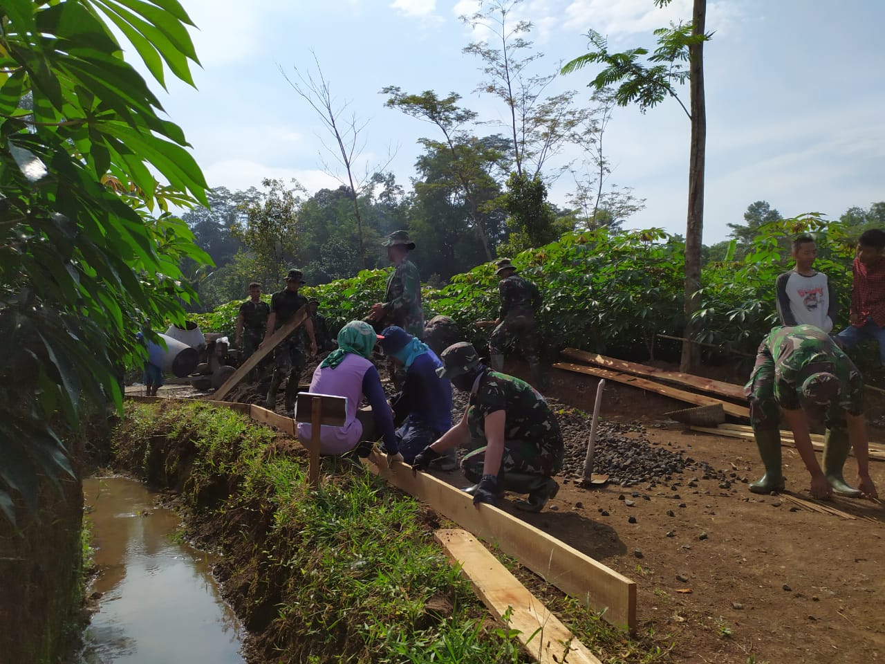 Kudus–Aktivitas pembangunan jalan Dusun Talun Desa Kedungsari Kecamatan Gebog Kabupaten Kudus terus dikebut.Satuan Tugas (Satgas) TNI Manunggal Membangun Desa (TMMD) Ke-107 Tahun 2020 Kodim 0722/Kudus bersama warga setempat kembali memasang bekisting,di jalan yang dilaksanakan pengecoran melintasi area perkebunan warga.Rabu 18/3/2020.