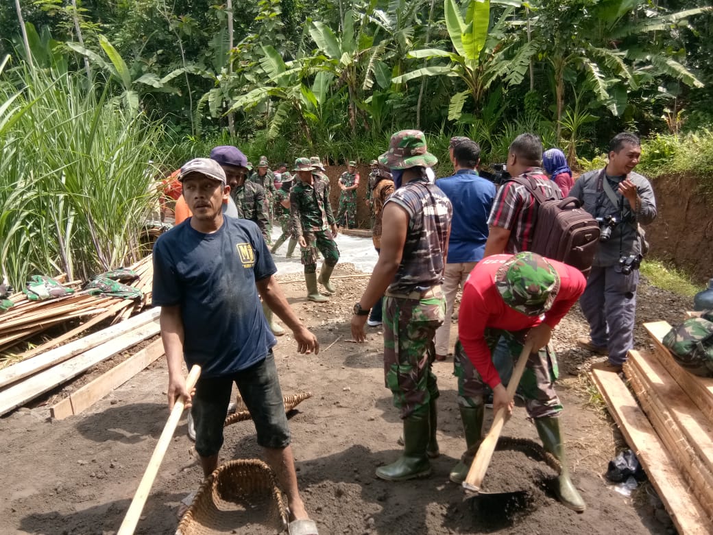 Kudus – Resimen Mahasiswa (Menwa) Satuan 954 Yudha Gama Institut Agama Islam Negeri (IAIN) Kudus Kudus melaksanakan kerja bhakti di lokasi TNI Manunggal Membangun Desa (TMMD) Reguler Ke 107 Kodim 0722/ Kudus Dukuh Talun Desa Kedungsari Kecamatan Gebog Kabupaten Kudus, Minggu 22/03/20.