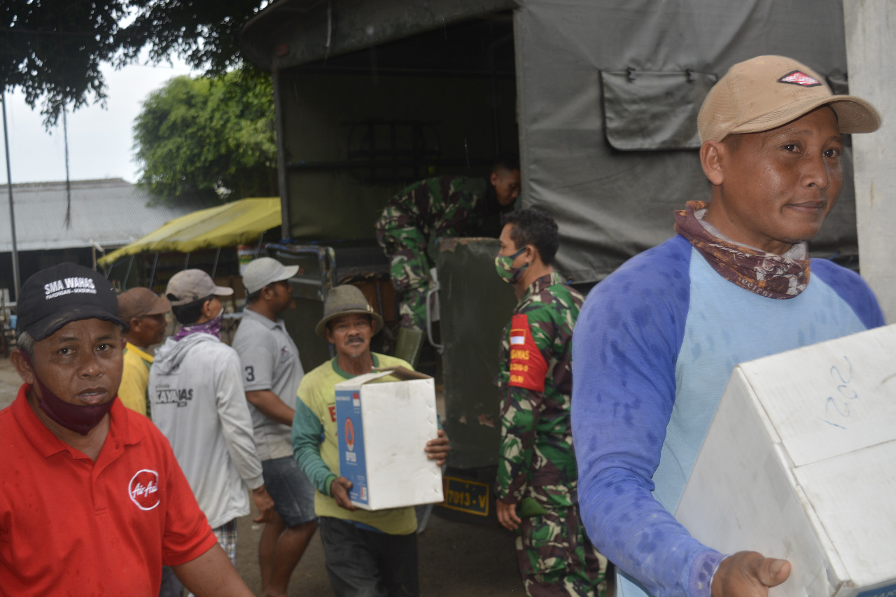 Dandim 0812 Lamongan Letkol Inf Sidik Wiyono turun langsung menyalurkan sejumlah paket makanan siap saji kepada masyarakat.