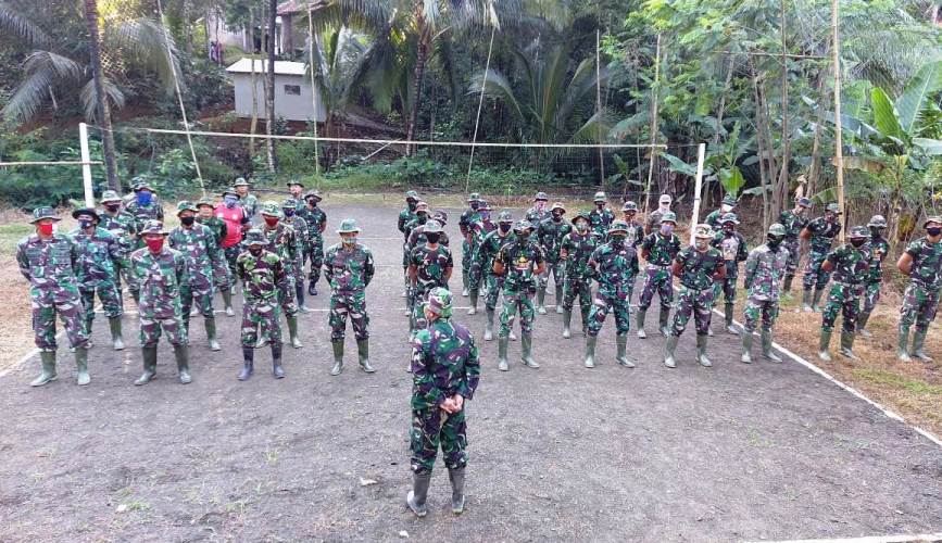BANYUMAS – Di hari ke-11 pelaksanaan TMMD Reguler ke-108 Kodim 0701/ Banyumas, di Desa Petahunan, Kecamatan Pekuncen, Kabupaten Banyumas, Danramil Pekuncen, Kapten Inf. Subandi “suntik” semangat para TNI anggota satgas TMMD .