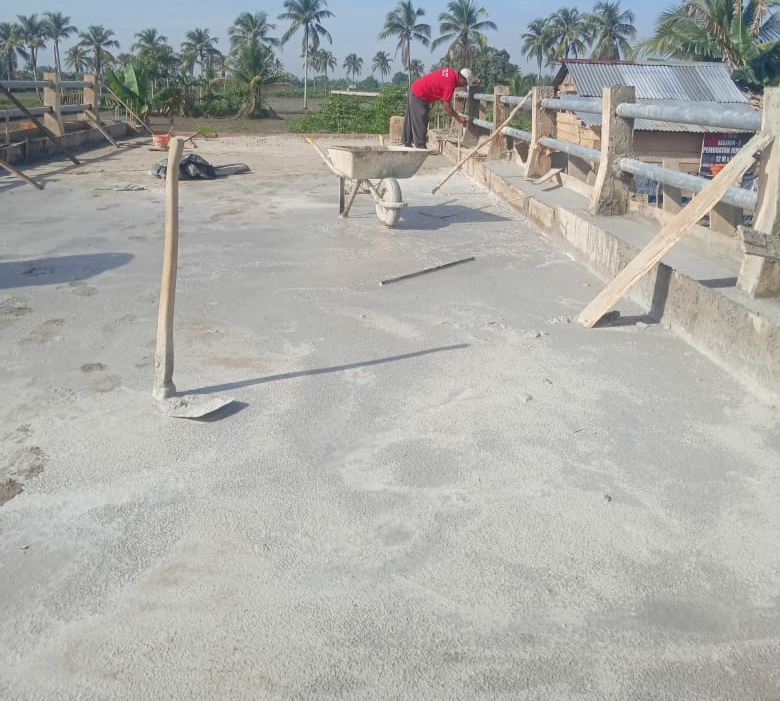 Tanggal 30 Maret 2021 malam, satgas TMMD Kodim Palembang lembur untuk menyelesaikan pengecoran pada bagian tengah jembatan penghubung.