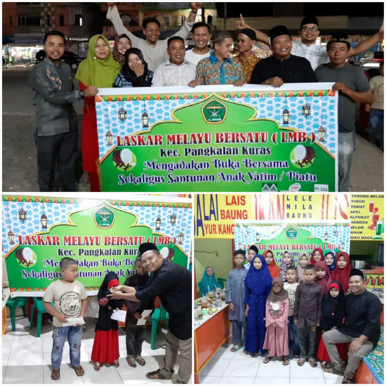 Sorek Satu, newshanter.com – Laskar Melayu Bersatu (LMB) Kecamatan Pangkalan Kuras, buka puasa bersama dan berikan santunan anak yatim di lesehan Ayam Penyet Dwi Putra Tunggal Jalan Lintas Timur Kelurahan Sorek Satu Kecamatan Pangkalan Kuras Kabupaten Pelalawan Riau, minggu ( 2/6/2019).