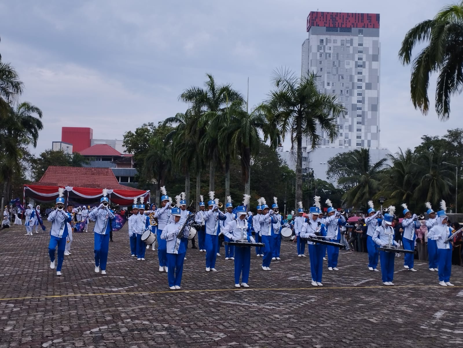 Dan kita mulai berangsur-angsur untuk memeriahkan, melalui lomba matching band dan drum band ini, insya Allah dapat ciptakan oleh generasi muda yang kreatif, dan sportif.