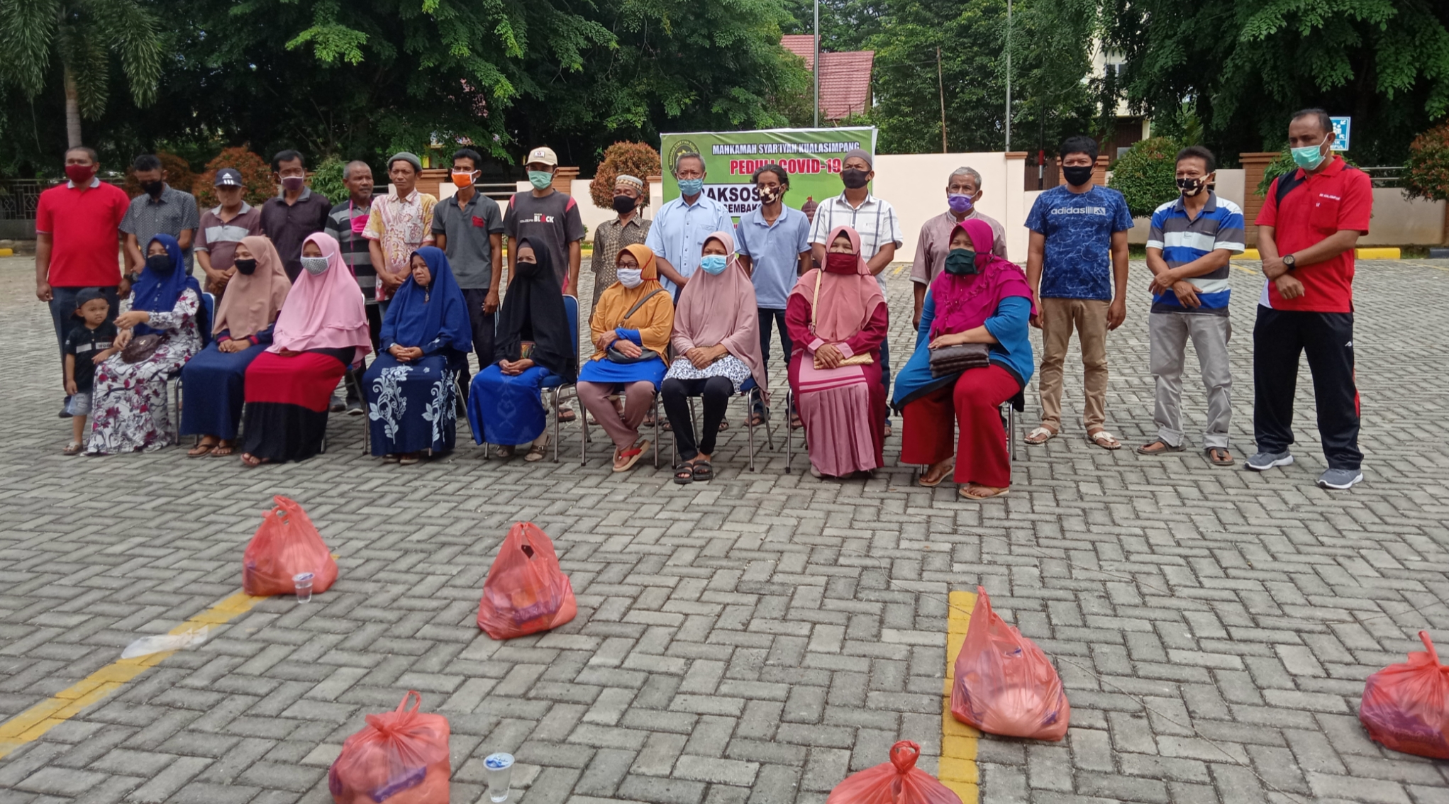 Mahkamah Syar’iah Kualasimpang peduli dengan Masyarakat untuk membagikan 40 paket sembako kepada warga yang terdampak Covid-19, kegiatan berlangsung dihalaman Kantor Mahkamah Syar’iah (MS) Kualasimpang, Jum’at (26-06).