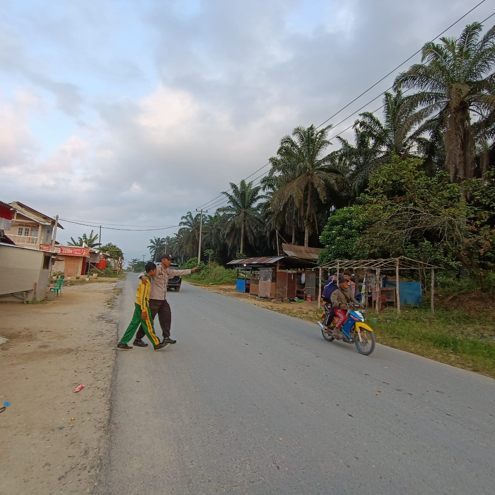 PELALAWAN, NEWSHANTER.COM – Anggota Polsek Kerumutan Polres Pelalawan Aipda M Sinaga melaksanakan strong point Pagi dan pengaturan lalu lintas serta stasioner guna mencegah kemacetan, kecelakaan lantas, dan antisipasi kriminalitas.