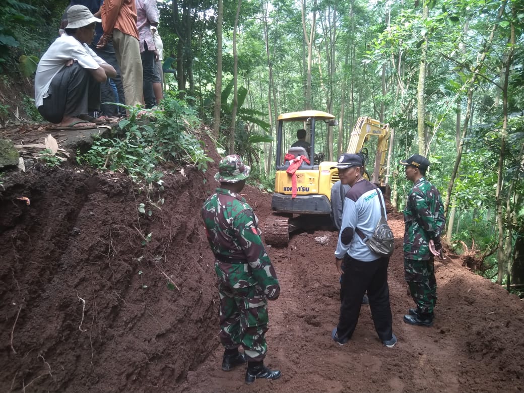 Sedikit dibawah tempat ia duduk nampak seorang Babinsa juga mengamati alat berat itu bekerja. Sementara ini masih pra TMMD kita mengawasi jalan yang dibuat dan akan dilanjutkan hingga tuntas ketika sudah dibuka resmi tanggal 16 nanti, tutur Sertu Ali.