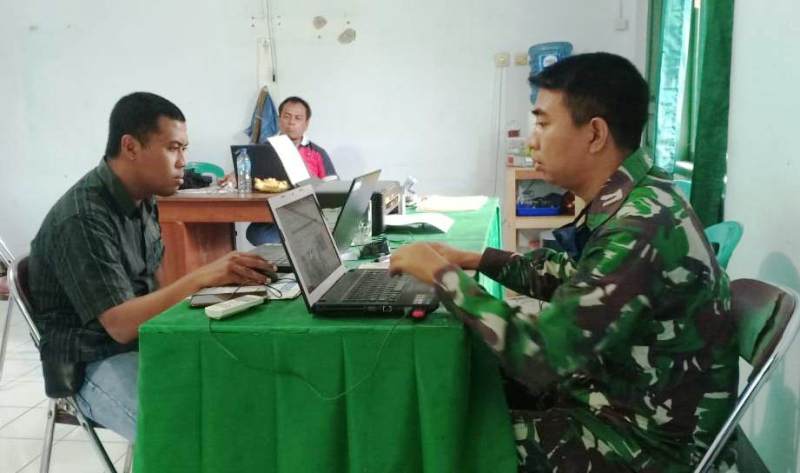 Tampak kesibukan Pelda Rusgiarto (kaos merah), Kepala Pendim Pekalongan, bersama anggota Tim Jurnalistik TMMD Reguler 107, masih setia berada di depan laptop masing-masing dan juga sesuai dengan job deskripsinya masing-masing. Kamis (16/4/2020).