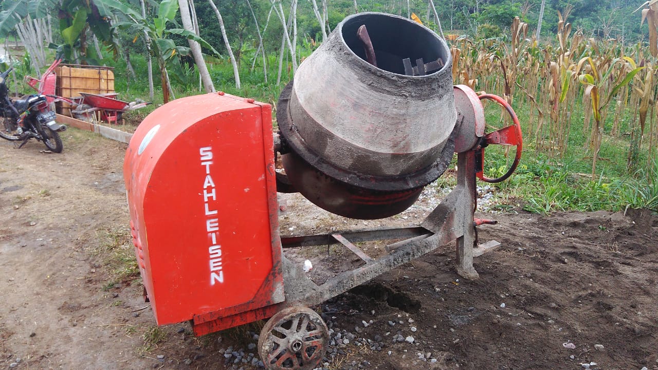Bagaikan ingin melahap apapun yang masuk ke perutnya ini, mesin molen sudah siap untuk melaksanakan tugas dari pengendali yakni anggota satgas TMMD Kodim 0807/Tulungagung dalam pengerjaan perabatan jalan cor yang nantinya akan digunakan warga Desa Ngepoh dalam melaksanakan kegiatan sehari-hari.