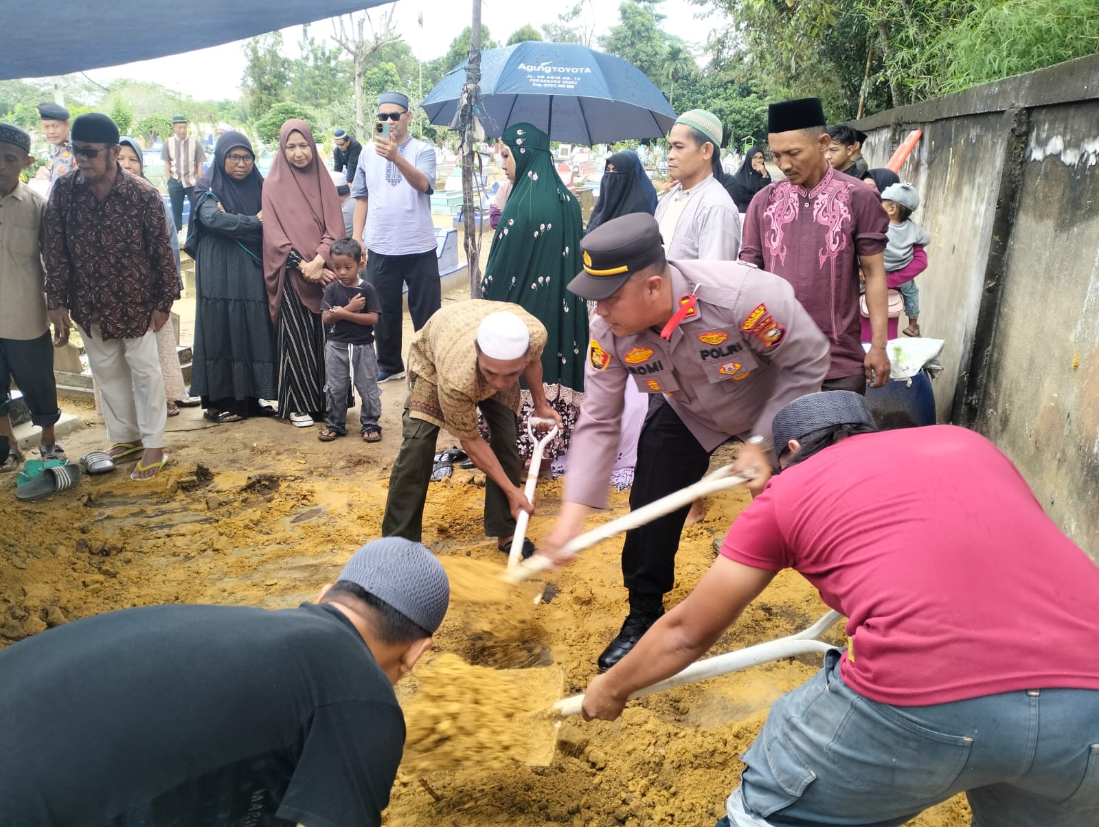 PELALAWAN, NEWSHANTER.COM – Meskipun sibuk dengan kegiatan kepolisian dalam menciptakan suasana yang damai, aman dan kondusif serta sejuk, Kapolsek Pangkalan Kerinci AKP Romi Irwansyah, S.H., M.H menyempatkan untuk melakukan Sambang Duka Harmoni dan ikut melakukan proses penguburan, Sabtu (23/12/2023).