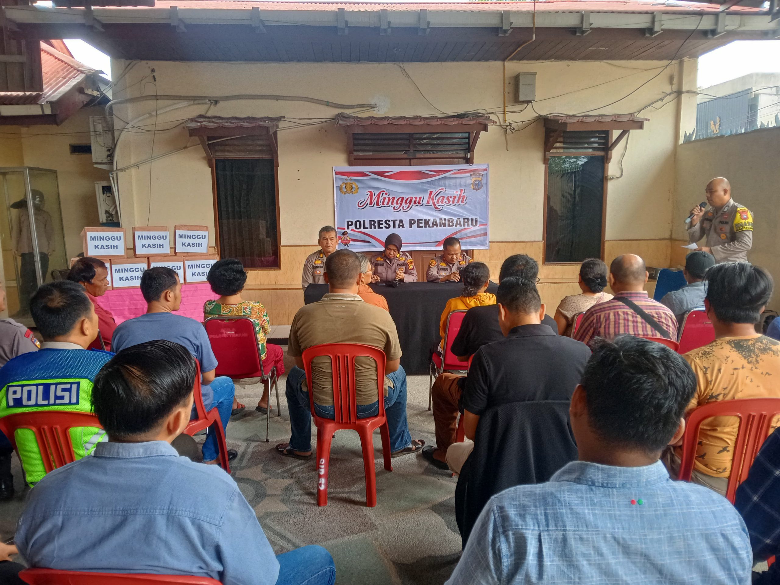 Kegiatan Minggu Kasih Poresta Pekanbaru bertujuan untuk bersilaturrahmi, menciptakan kekeluargaan dan kebersamaan sehingga terciptanya Harkamtibmas.