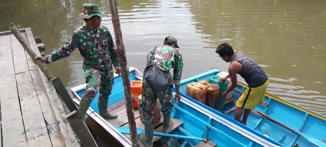 KOTABARU – Guna mendukung kelancaran alat berat membangun jalan 6000 Meter di lokasi TMMD 112 Kodim 1004/Kotabar, di Desa Rampa Manunggul Kecamatan Sampanahan Kabupaten Kotabaru satgas membantu operator mengisi BBM alat berat, Sabtu(18/09/2021).
