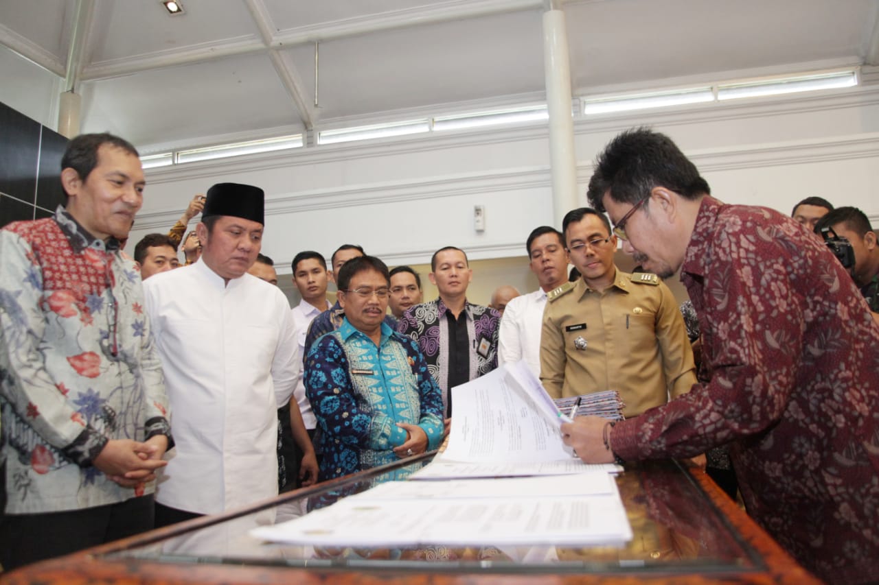Hal tersebut diungkapkan Gubernur Sumsel H. Herman Deru dalam sambutannya ketika memberikan sambuatan pada acara Penandatanganan Kesepakatan Bersama antara Gubernur dan Bupati/Walikota se- Prov. Sumsel dengan Kantor Wilayah Direktorat Jenderal Pajak Sumsel dan Kepulauan Bangka Belitung tentang Optimalisasi Penerimaan Pajak Pusat dan Daerah dan dengan Kepala Kantor Wilayah BPN Provinsi Sumsel tentang Kerjasama Bidang Pertanian bertempat di Griya Agung Palembang, Kamis (23/5/2019).
