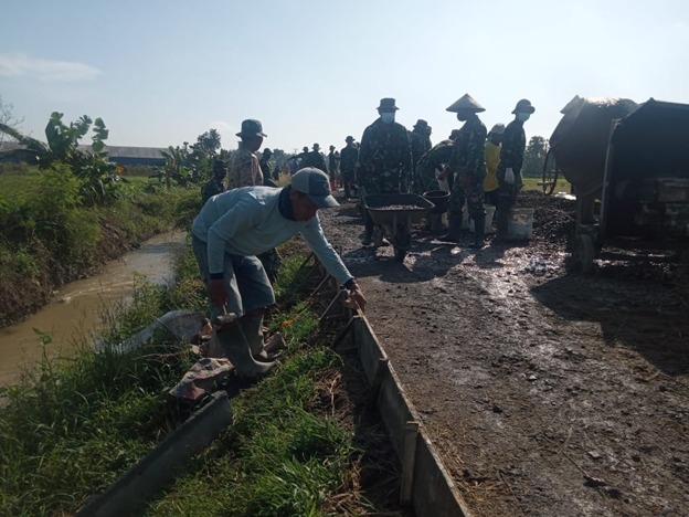 PATI – Dalam program TNI Manunggal Membangun Desa (TMMD) Reg 111 Tahun 2021 Kodim 0718/Pati, di Desa Tamansari, Kecamatan Jaken Kabupaten Pati, Jawa Tengah, anggota Satgas TMMD masih terus berpacu dengan waktu untuk mengerjakan dan merampungkan pembangunan jalan rabat beton, Rabu (30/06/2021).