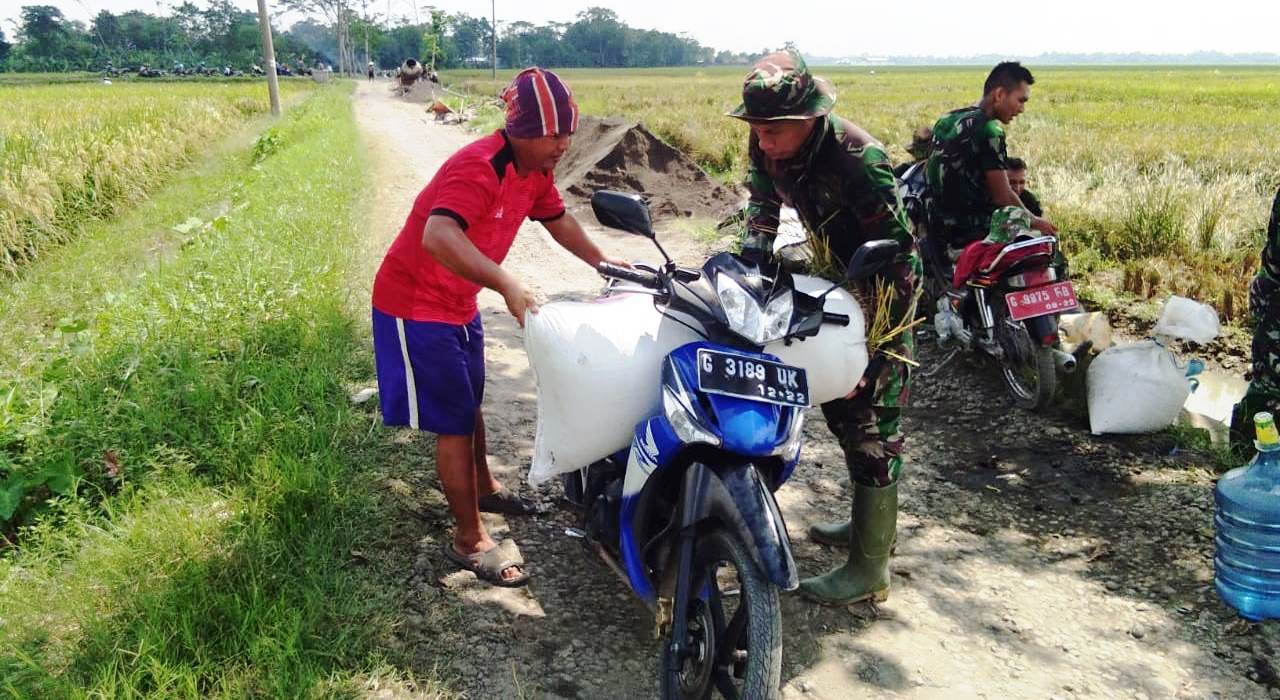 Adalah Prada Makatita dan sejumlah anggota Satgas TMMD yang dari Satuan Yonif 405/ Surya Kusuma, yang tengah mengejar target penyelesaian talud yang menjadi sasaran pokok TMMD Kodim Pekalongan. Di setiap harinya, di tengah-tengah sibuk membangun talud, mempunyai tugas tambahan baru, yakni membantu para petani mengangkat gabah dalam karung hasil panenan warga setempat.