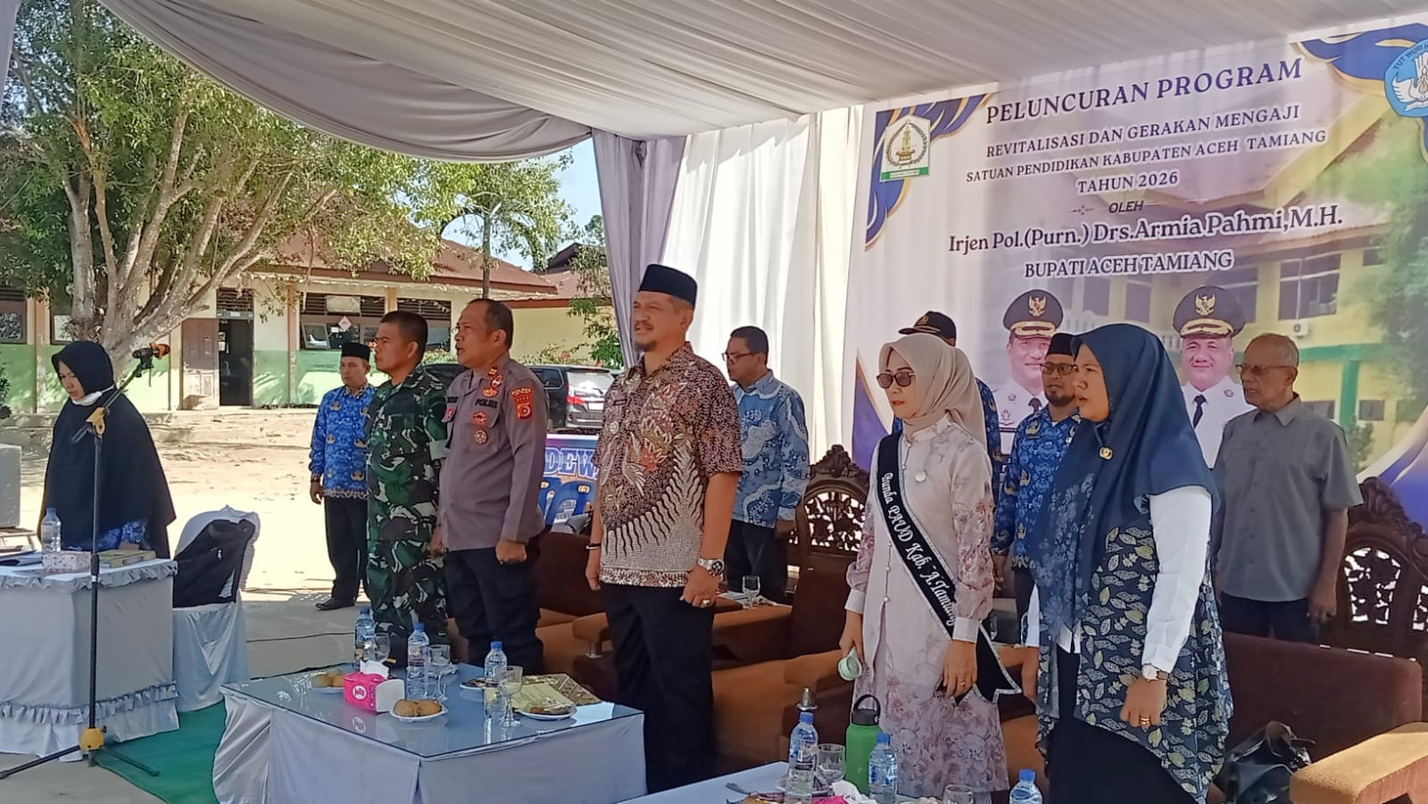 Pasca Banjir Hidrometeorologi Bupati Aceh Tamiang secara resmi meluncurkan Program Revitalisasi Satuan Pendidikan dan Program Mengaji Sebelum Belajar Tahun 2026 di Lingkungan Sekolah, di SMP 2 Karang Baru (23/04/2026).
