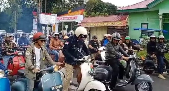 Bukittinggi, newshanter.com – Pasangan Walikota- Wakil Walikota Bukittinggi Nomor Urut 3 Erman Safar –Heldo Aura lakukan Touring dalam Kota Bukittinggi dalam Rangka kampanye tatap muka dengan Masyarakat dan komunitas Vespa Bukittinggi , Minggu (17/11/2024) .