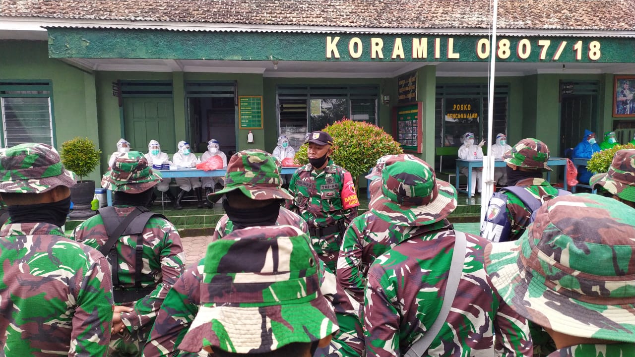 Sebelumnya, mereka dikumpulkan di halaman Koramil 0807/18 Tanggunggunung untuk mendapatkan arahan dari Danramil 18 Kapten Inf. Wagimin mengenai pelaksanaan TMMD yang akan dimulai pembukaannya esok hari.