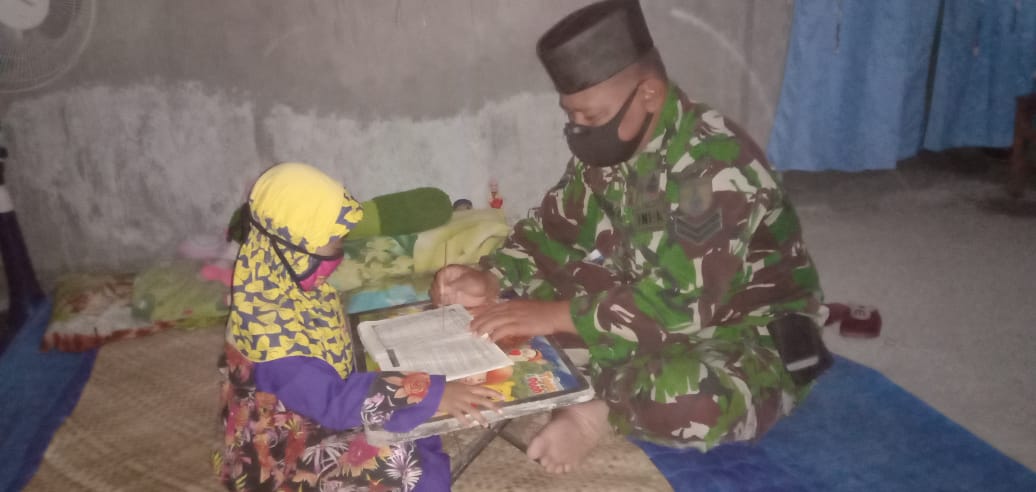 “Berkunjung ke rumah warga, sembari mengajari adek Salma putri Bapak Rahman untuk belajar iqro’,” ujar Sertu Agus, Selasa (23/3/2021).