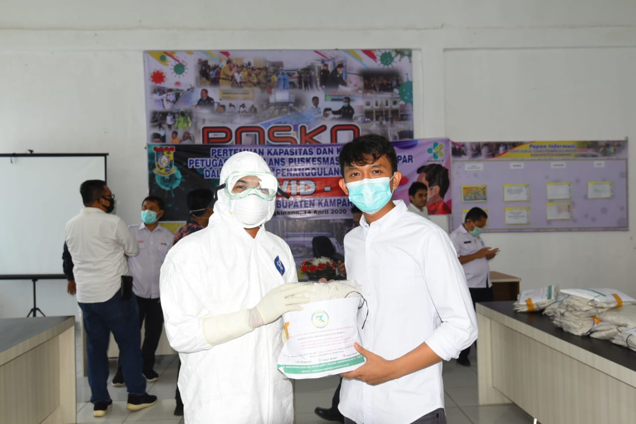 Kepala Dinas Kesehatan Kabupaten Kampar Dedi Sambudi menyatakan Terkait ancaman nyata Covid-19 ini Pemkab Kampar terus berupaya dalam memenuhi akan kebutuhan Alat Pelindung Diri (APD) namun kita juga menerima bantuan maupun sumbangan dalam penanggulangan dan pencegahan penyebaran Covid-19 ini, kami sangat mengapresiasi hal seperti ini ” Kata Dedi Sambudi yang didampingi Kabid Layanan Kesehatan Poppy.