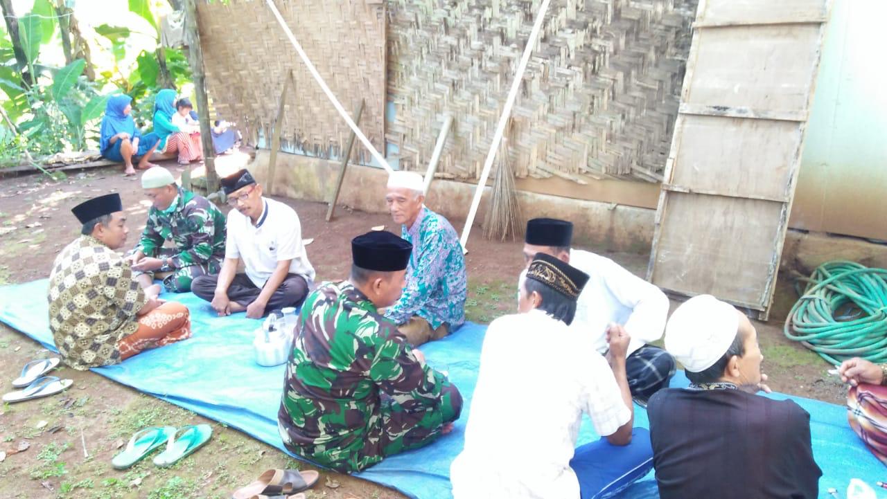 Sertu Suin Anggota Bintalrem 083/Bdj yang tergabung dalam Satgas TMMD 107 Kodim 0823/Situbondo sempatkan untuk takziah, RABU, (25/3/20).