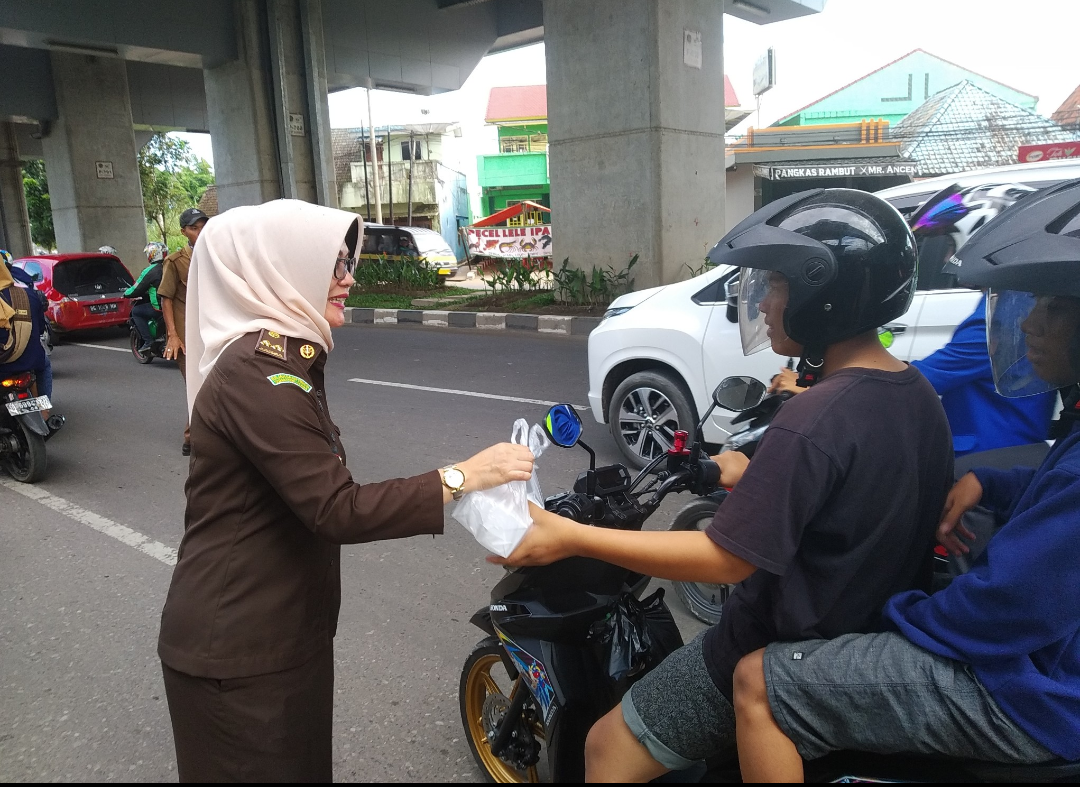 Pegawai Kejari dan Ikatan Adhyaksa Dharmakarini Palembang Bagikan Takjil