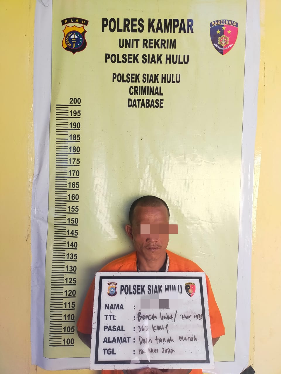 Pelaku adalah JZ (33) warga Desa Pandau Jaya, Kecamatan Siak Hulu, pelaku melakukan aksinya di Jalan Surya Baru, Desa Tanah Metah, Kecamatan Siak Hulu di rumah korban Anton Surya Atmaja (51) pada Kamis (12/5/2022) sekira pukul 04.45 WIB.