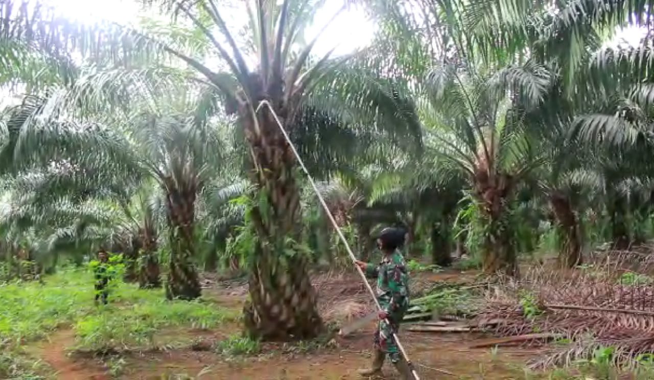Bagi dirinya, sebagai seorang TNI ia menceritakan kalau belum pernah tahu cara untuk menggatol plasma. Pada hari ini, Minggu (12/4/20) dirinya ingin mencoba membantu panen kelapa sawit plasma milik H. Tamrin.