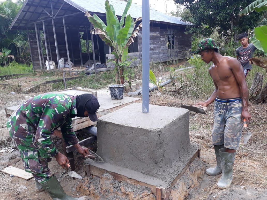 Kapuas,- Pembuatan jamban untuk warga desa Saka Lagun, Kecamatan Pulau Petak, Kabupaten Kapuas yang masuk dalam sasaran TNI Manunggal Membangun Desa (TMMD) 110, Kodim 1011/KLK, terus dilakukan, walau dengan keterbatasan akses distribusi material ke titik sasaran pembangunan jamban.