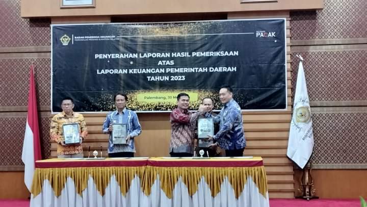 Palembang, newshanter.com – Pemerintah Kabupaten OKU Selatan menerima langsung Dokumen Laporan Hasil Pemeriksaan (LHP) Atas Laporan Keuangan Tahun Anggaran 2023 yang diserahkan oleh Badan Pemeriksaan Keuangan (BPK) Perwakilan Sumatera Selatan, Kamis (30/05/2024). Bertempat di kantor BPK Perwakilan Sumsel.