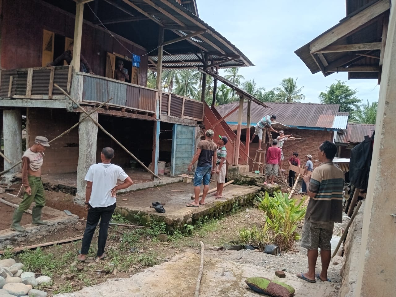 Bukti masyarakat sangat mendukung, masyarakat sangat kompak melakukan kerja bergotong royong bersama membongkar dan mengerjakan rumahnya Jamari.