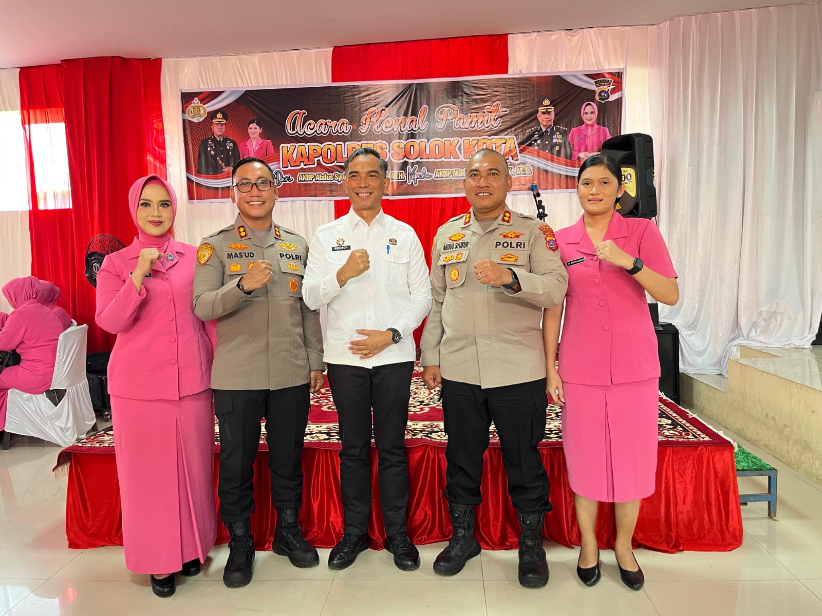 “Atas nama Pemerintah Daerah dan masyarakat Kabupaten Solok, khususnya di wilayah utara yang berada dalam yurisdiksi Polres Solok Kota, kami mengucapkan selamat datang dan selamat bertugas kepada Bapak Kapolres AKBP Mas’ud Ahmad S.I.K, M.Si. Pemerintah Daerah siap mendukung sepenuhnya pelaksanaan tugas Bapak beserta jajaran demi terciptanya keamanan dan ketertiban masyarakat,” ujar Sekda.