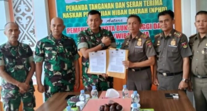 Penanda tanganan  NPHD antara Pemko Bukittinggi yang di Wakili oleh kasat Pol PP Bukittinggi Joni Frei dan Komando Resor Meliter yan di Wakili Oleh  Komandan Kodim 0304/Agam Letkol Arm. Bayu Ardhitya Nugroho, SH. M.Han.