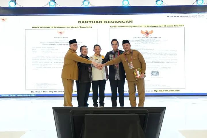 Aceh Tamiang, jewshanter.com -Pemerintah Kabupaten Aceh Tamiang menerima bantuan keuangan khusus berupa hibah sebesar Rp50 miliar dari Pemerintah Kota Medan dalam rangka percepatan pemulihan pascabencana. Penyerahan bantuan tersebut berlangsung di Ball Room Muraya Hotel Banda Aceh, Senin (20/04/2026), dalam rangkaian Rapat Kerja Asosiasi Pemerintah Kota Seluruh Indonesia Komisariat Wilayah I.