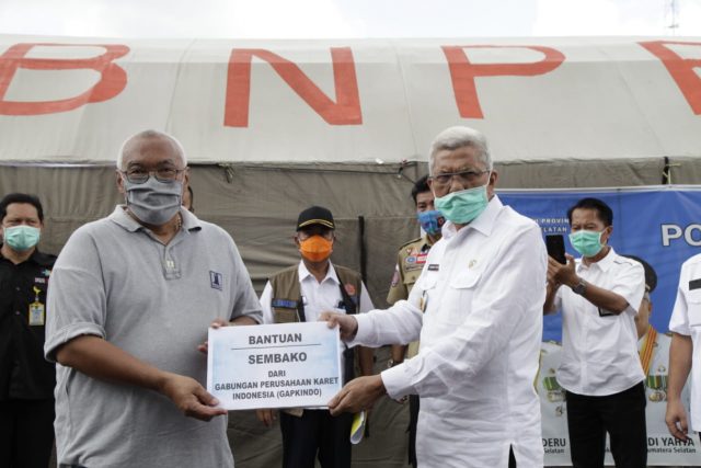 PALEMBANG – Newshanter.com. Pemprov Sumsel kembali menerima bantuan. Kali ini, bantuan tersebut datang dari Gabungan Perusahaan Karet Indonesia (Gapkindo) Sumsel, Rabu (29/4) pagi. Bantuan tersebut diterima langsung oleh Wakil Gubernur Sumse H. Mawardi Yahya di depan posko penanganan Covid-19 yang berada di halaman kantor Gubernur.