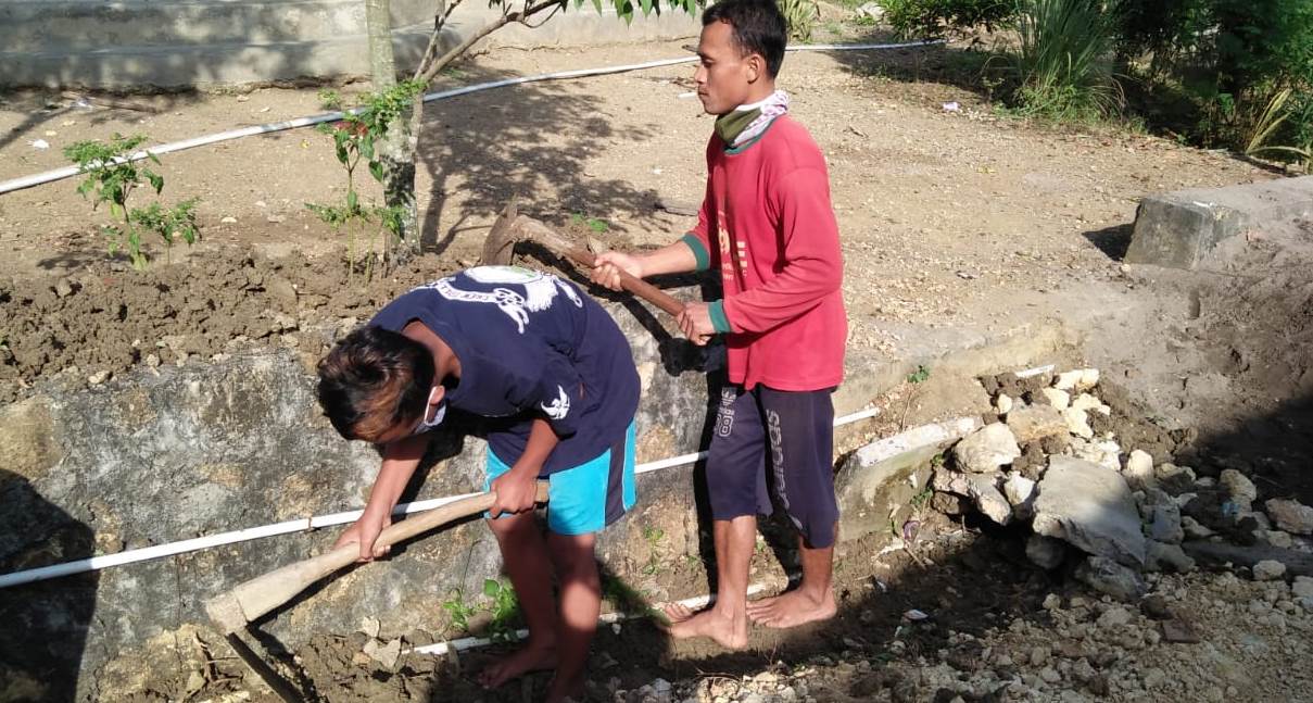 Dalam pembuatan saluran air di Pra TMMD itu, sejumlah warga dari banyak kalangan umur terlibat. termasuk salah satu diantaranya, Ahmad Tegar Ariwibowo (23) yang begitu antusias bekerja keras bersama bapak-bapak di desanya.
