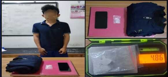 Barang bukti yang diamankan meliputi satu paket sabu dengan berat bruto 4,86 gram, satu unit telepon genggam yang digunakan untuk komunikasi, serta pakaian yang dikenakan tersangka saat kejadian. Pemeriksaan urine terhadap tersangka juga menunjukkan hasil positif, yang mengindikasikan bahwa pelaku berperan sebagai pengedar sekaligus pengguna.