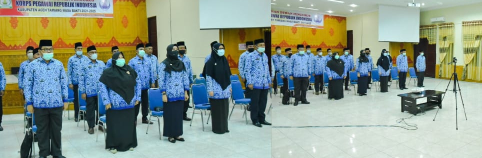 Pengukuhan Dewan Pengurus KORPRI Kabupaten Kota se-Aceh dan KORPRI. Pengukuhan ini dilaksanakan di unit SKPA di Lingkungan Pemerintah Aceh masa bakti 2021-2025 secara virtual, serentak di seluruh Kabupaten/Kota di Provinsi Aceh dengan mengusung tema Tingkatkan Eksistensi KORPRI dalam Rangka Pembinaan ASN Profesional, Sejahtera dan Melayani. Acara berpusat di Anjong Mon Mata Banda Aceh sekira pukul 16.50 wib pada Senin (05/04/2021).