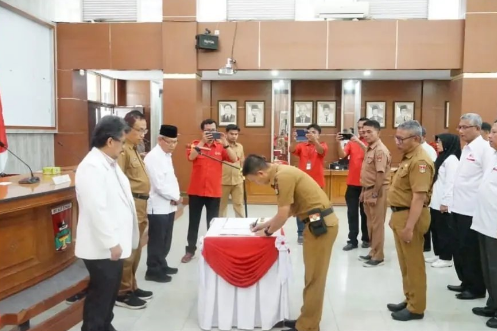 Pelantikan ditandai dengan dibacakan ikrar pelantikan dan penandatanganan SK pelantikan PMI Bukittinggi.