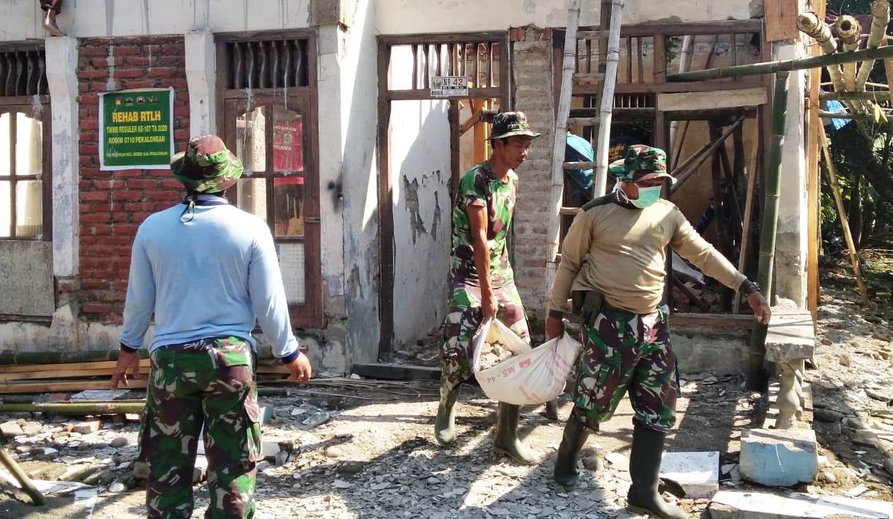 PEKALONGAN, Newshanter.com – Proses perehaban rumah Suwarni (66), di Dukuh Sutosari RT 02/ RW 04 Desa Pantirejo, Kecamatan Kesesi, Kabupaten Pekalongan, Jawa Tengah, yang dilakukan oleh jajaran TNI anggota Satgas TMMD Reguler ke-107 Kodim 0710/Pekalongan bersama warga, mulai melihatkan hasil. Meski angka progresnya baru 30 persen.