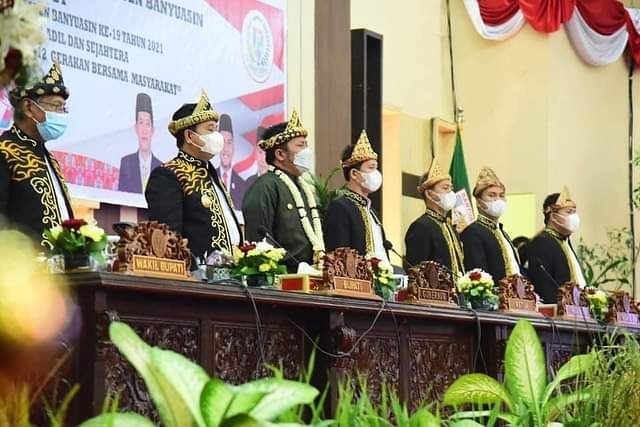 Banyuasin,newshanter.com – Pemerintah Kabupaten Banyuasin bersama Dewan Perwakilan Rakyat Daerah (DPRD) Banyuasin Rapat Paripurna Istimewa di Gedung Rapat Paripurna DPRD Banyuasin berlangsung khidmat, Sabtu (10/04/21).