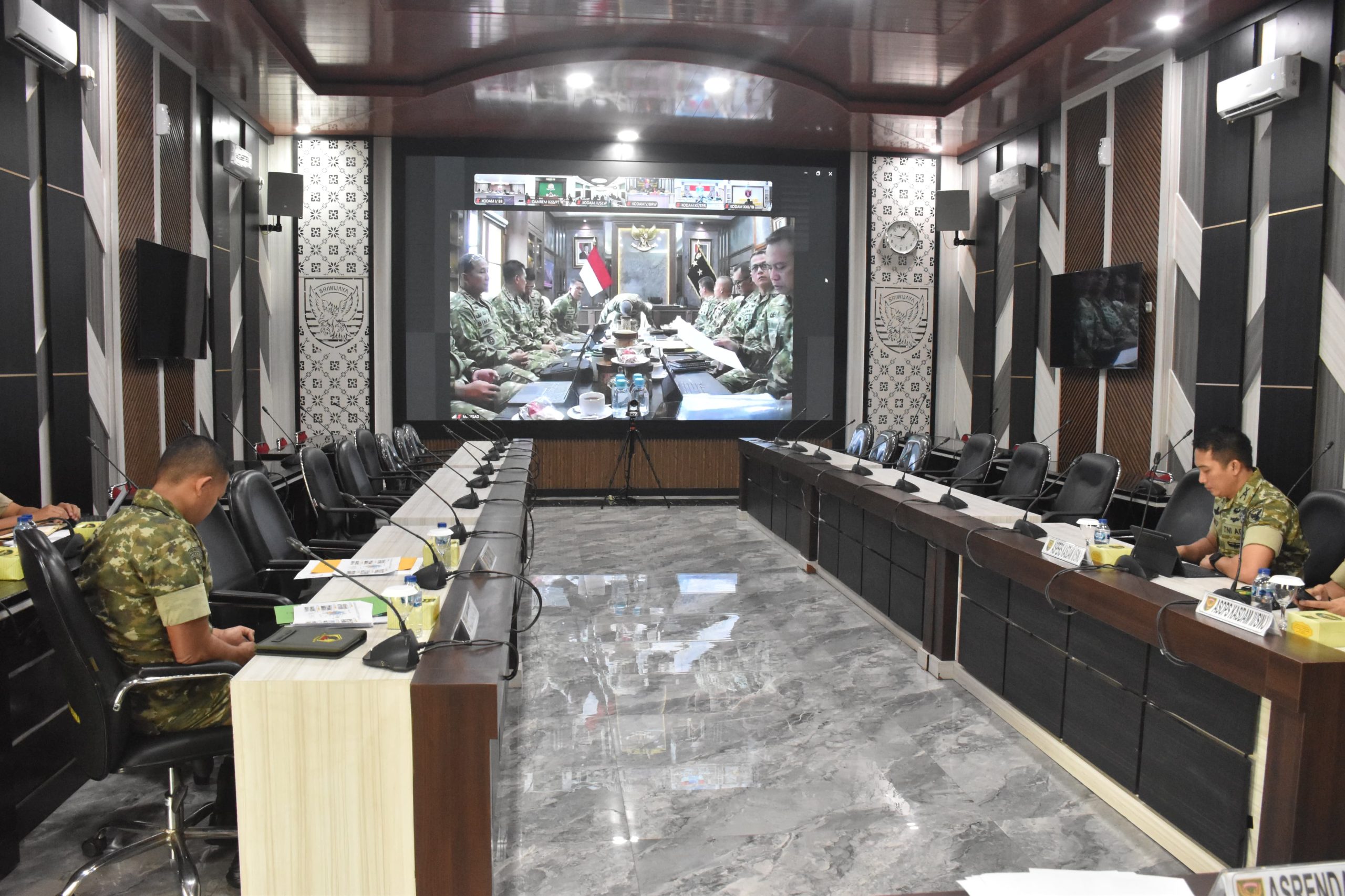 Palembang, newshanter.com – Dalam rangka meningkatkan efektivitas penataan organisasi dan kesiapan satuan tempur, Asisten Perencanaan Kodam II/Sriwijaya (Asrendam II/Swj), Kolonel Inf Mustamin, mewakili Pangdam II/Sriwijaya mengikuti kegiatan Evaluasi Tata Tugas dan Satuan (Tata Tuksat) Brigade Infanteri (Brigif) dan Batalyon Infanteri (Yonif) Tipe Pembangunan (TP) jajaran Tentara Nasional Indonesia Angkatan Darat secara virtual melalui Video Conference (Vicon).