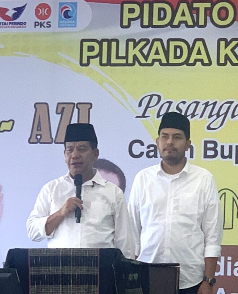 “Sekali lagi mari lah kita bersama sama datang ke TPS Untuk mencoblos No 1 RHS -AZI,” ujarnya.