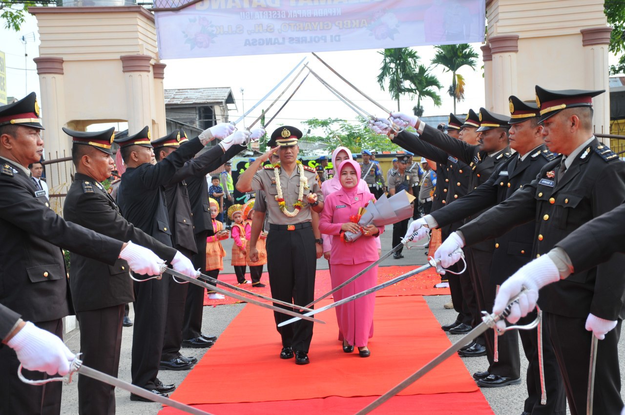 Dalam acara pisah sambut, Kapolres Langsa yang baru AKBP Giyarto,SH,SIK memperkenalkan diri bersama istrinya.