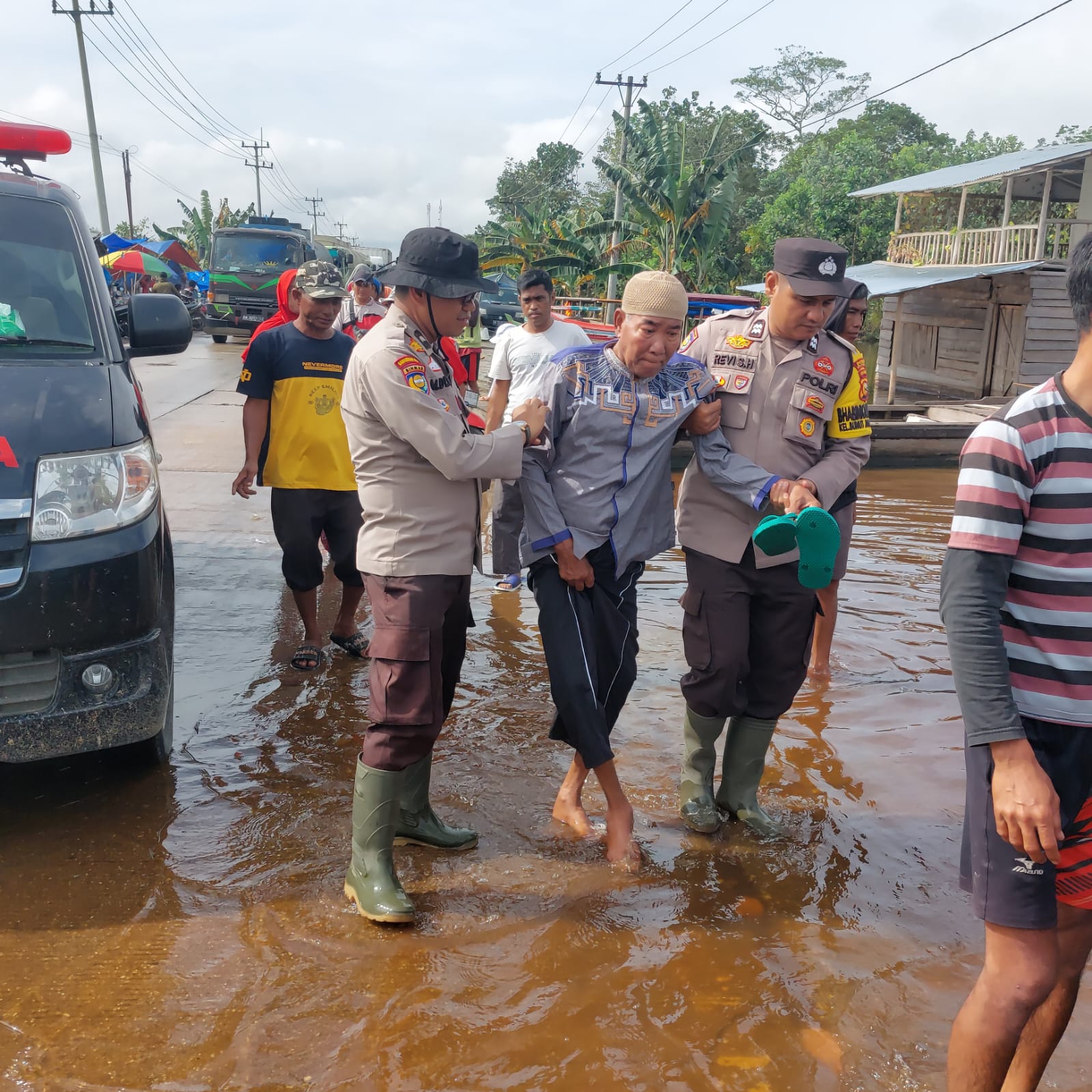 Kapolres Pelalawan AKBP Suwinto, S.H., S.I.K melalui Kapolsek Pangkalan Lesung Iptu AR. Tinambunan, S.E., M.S.i mengatakan dalam kesempatan itu, personil juga membantu Masyarakat yang hendak menyebarang di lokasi banjir .