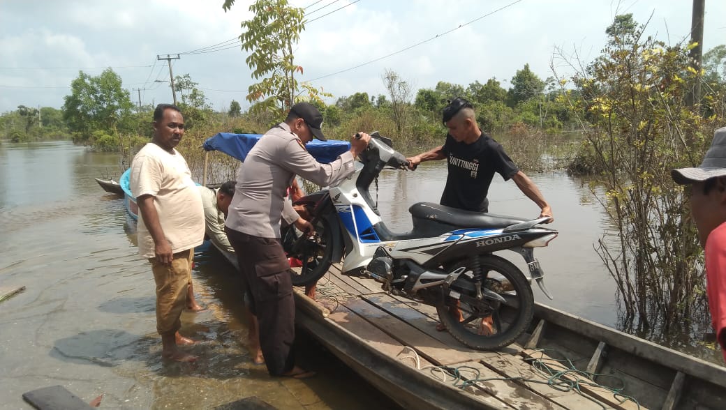 Kapolres Pelalawan AKBP Suwinto, S.H., S.I.K melalui Kapolsek Langgam Iptu Alferdo Krisnata Kaban, S.H mengatakan, dalam kegiatan tersebut personil Polsek Langgam membantu masyarakat yang ingin menyebrang menggunakan Pompong (Transportasi Air).