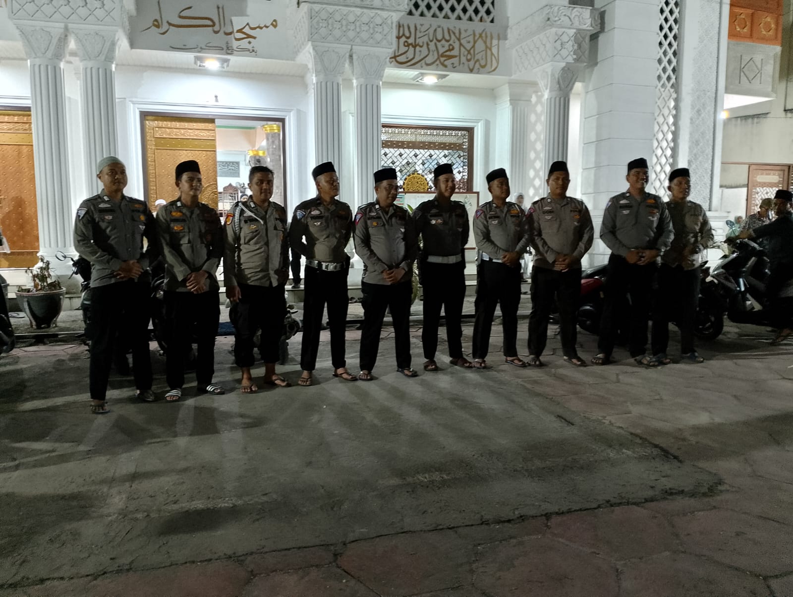 Kampar,newshanter.com – Personil Polres Kampar dilaksanakan Sholat Tarawih keliling pada Malam ke enam Ramadhan di Masjid Al Kiram, Minggu (17/3/2024).malam